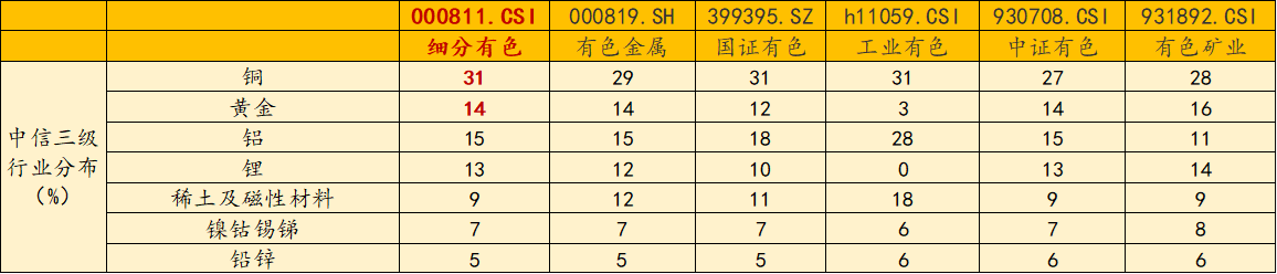 2、“金铜含量”同类领先:有色50ETF(159652)标的指数铜含量达31%,金含量达14%,金铜含量高达45%,同类领先!