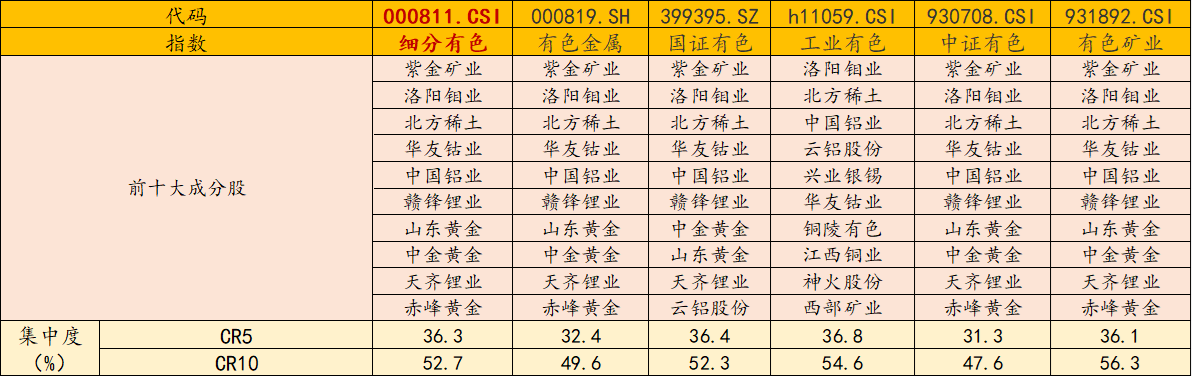 风险提示:基金有风险,投资需谨慎。投资人应当阅读《基金合同》《招募说明书》《产品资料概要》等法律文件,了解基金的风险收益特征,特别是特有风险,并根据自身投资目的、投资经验、资产状况等判断是否和自身风险承受能力相适应。基金管理人承诺以诚实信用、谨慎尽责的原则管理和运用基金资产,但不保证基金一定盈利或本金不受损失。以上基金属于中等风险等级(R3)产品,适合经客户风险承受等级测评后结果为平衡型(C3)及以上的投资者。请投资者关注指数化投资的风险以及集中投资于细分有色指数成分股的持有风险,请关注部分指数成分股权重较大、集中度较高的风险,请关注指数化投资的风险、ETF运作风险、投资特定品种的特有风险等。文中提及个股仅为指数成份股客观展示列举,本文出现信息只作为参考,投资人须对任何自主决定的投资行为负责。本文中的任何观点、分析及预测不构成对阅读者任何形式的投资建议。